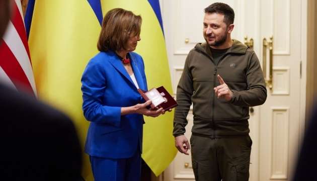 Президент України Володимир Зеленський нагородив спікера Палати представників Конгресу Сполучених Штатів Америки Ненсі Пелосі орденом княгині Ольги ІІІ ступеня.